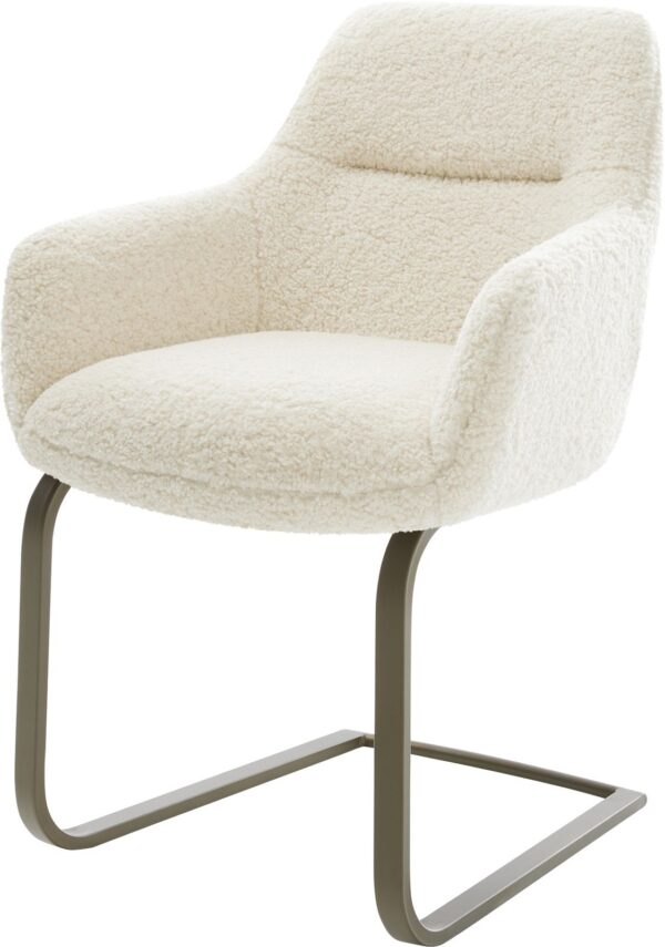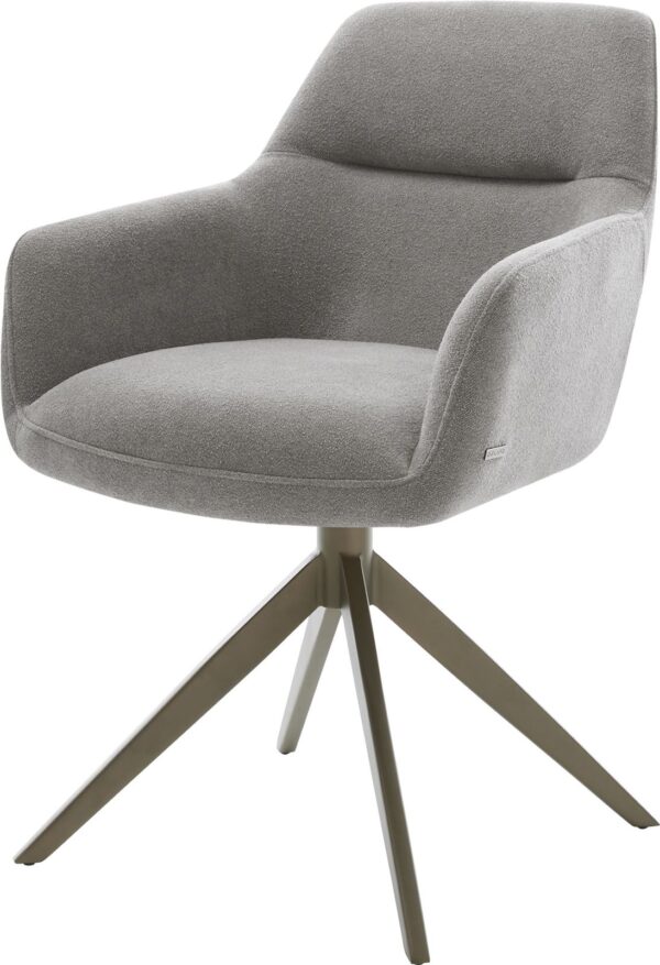 Étkezőszék Keila-Flex karfás strukturált szövet puha szürke kereszt láb széles fehér 360° forgatható billenő funkció