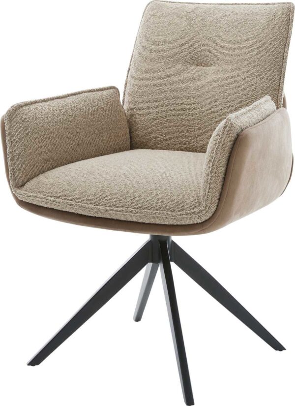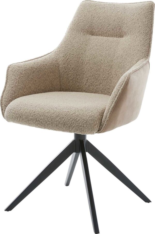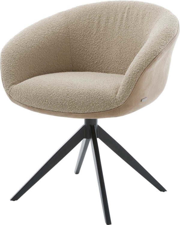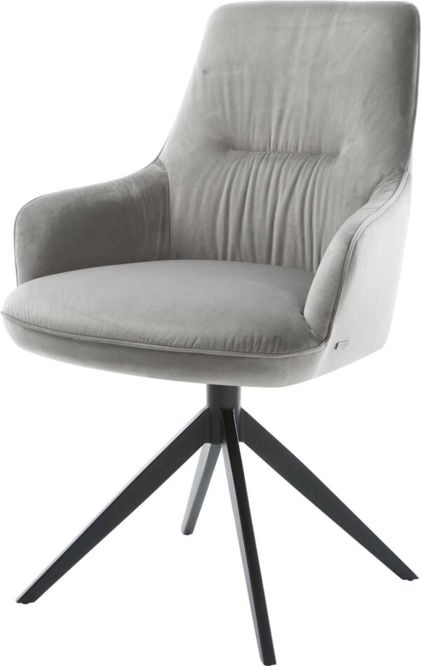 Étkezőszék Elso-Flex bouclé ezüstszürke kereszt láb széles titán effekt felület 360° forgatható hintamechanizmus zsákrugós matrac