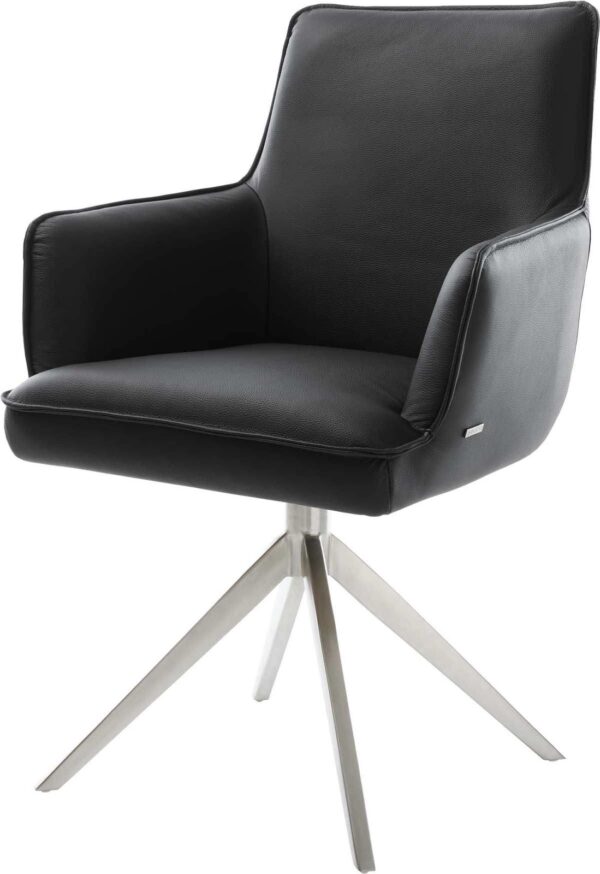 Étkezőszék Vinka-Flex karfás mikroszálas antracit vintage kereszt láb széles fekete 360° forgatható hintamechanizmus zsákrugós matrac