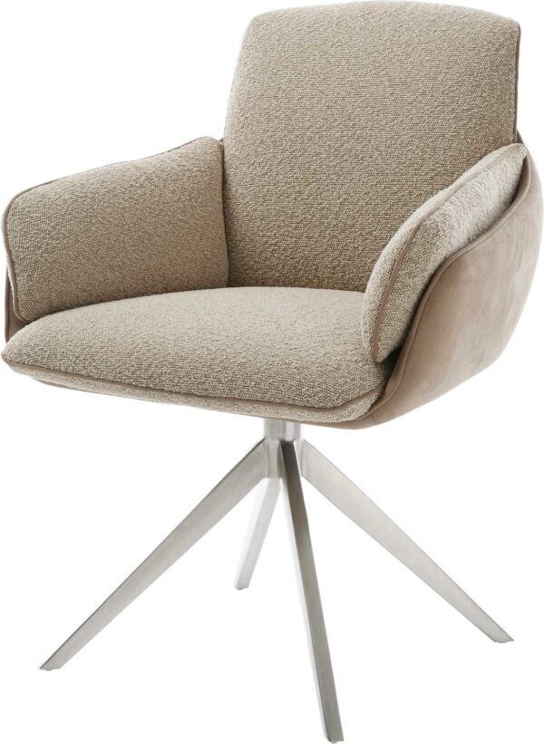 Étkezőszék Heira-Flex karfás mikroszálas antracit vintage kereszt láb széles rozsdamentes acél 360° forgatható hintamechanizmus zsákrugós