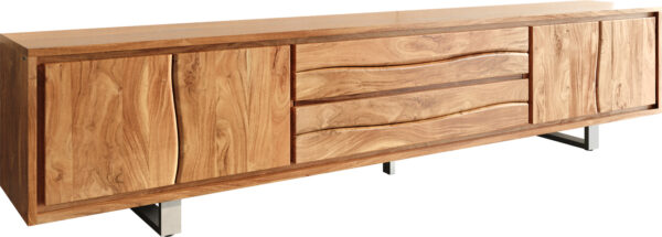 TV szekrény Live-Edge 300 cm akác természetes 4 ajtós 2 fiókos