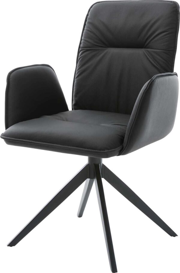 Étkezőszék Vinja-Flex valódi bőr fekete vékony lábazat rozsdamentes acél