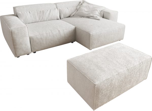 Rohová pohovka Sirpio D 250x155 cm bouclé krémově bílá variabilní s taburetem