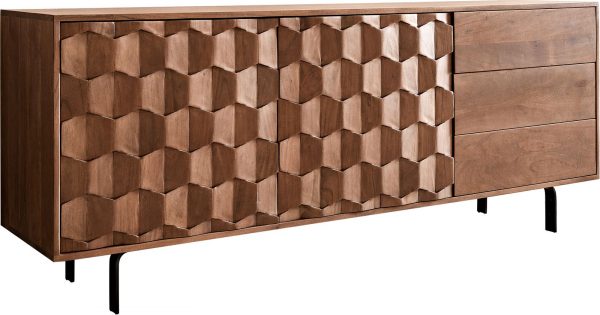 Komód Fevo 175 cm akác természetes 2 ajtós 3 fiókos L láb