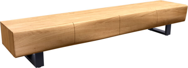 TV szekrény New Live-Edge 200 cm tölgy természetes 4 ajtós fém fekete vékony lábazattal
