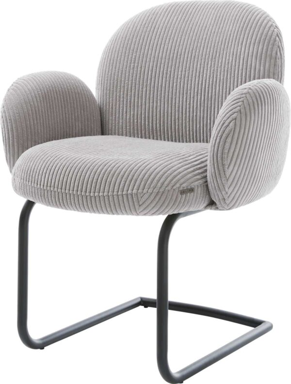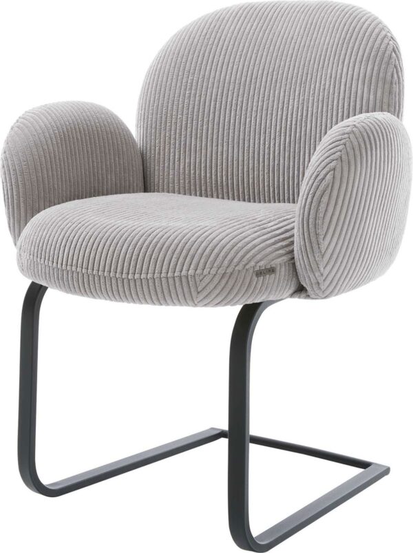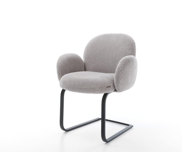 Étkezőszék Nube-Flex karfás bouclé ezüstszürke fa láb szögletes természetes 180° forgatható zsákrugós