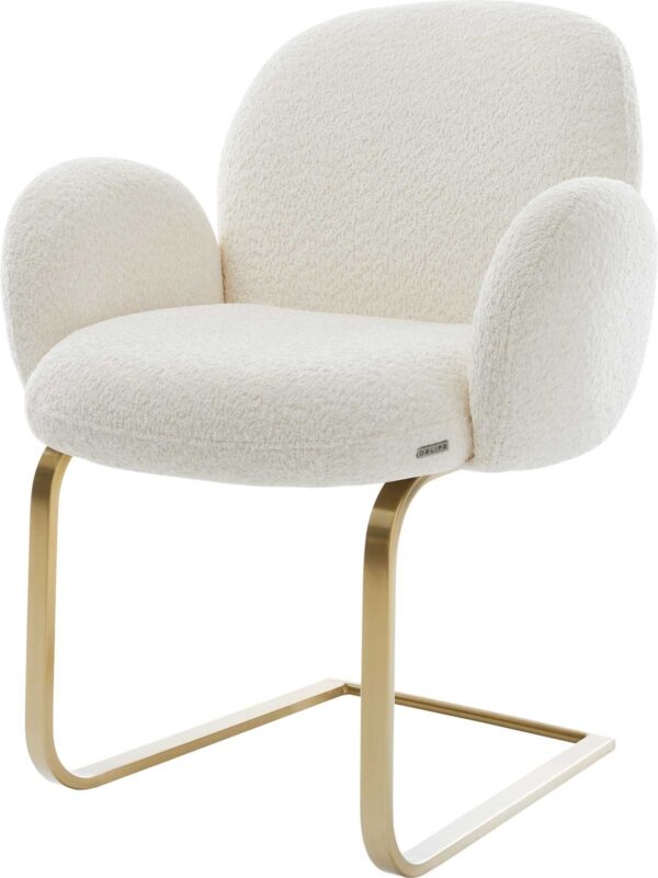 Jídelní židle Nube-Flex s područkami bouclé bílá konzolová podnož plochá zlatá taštičkové pružiny