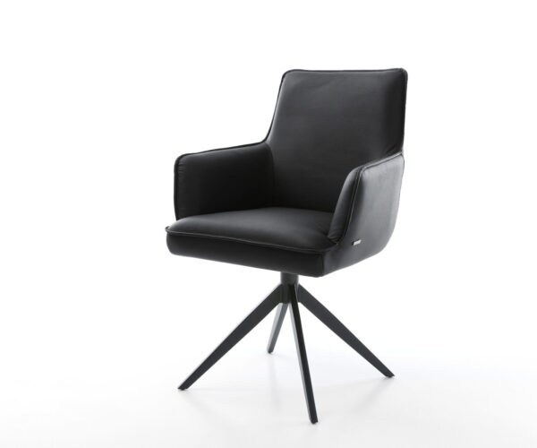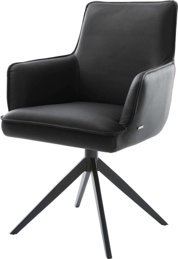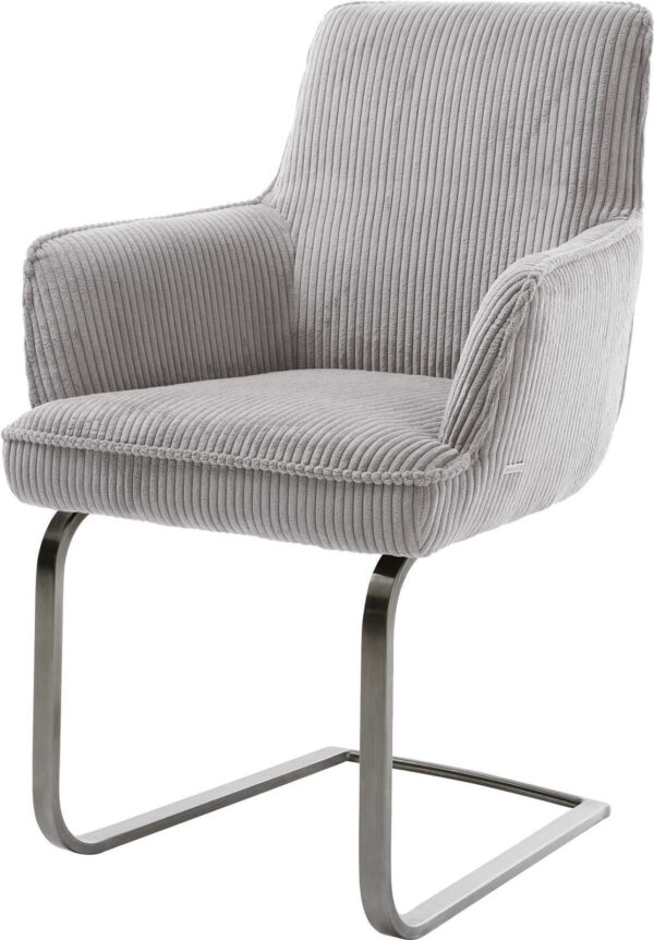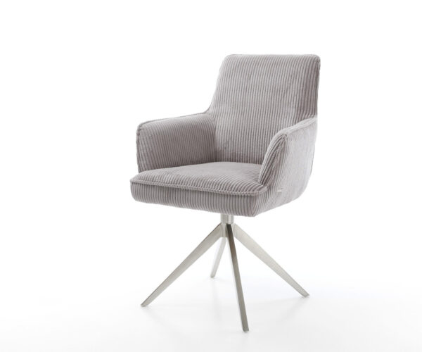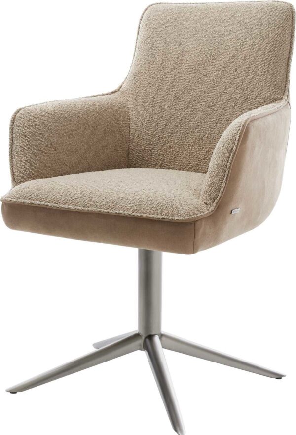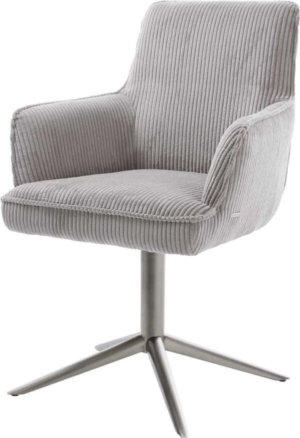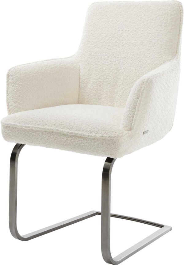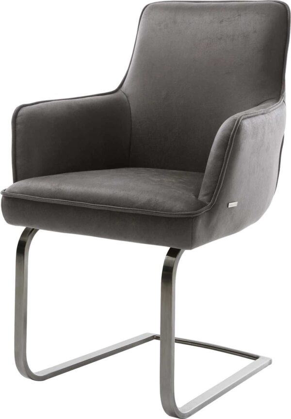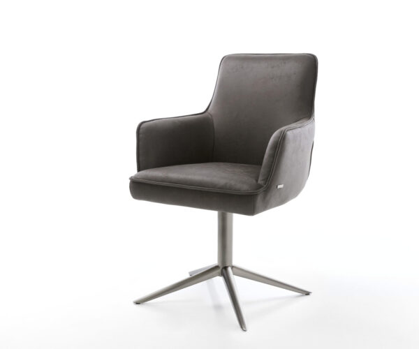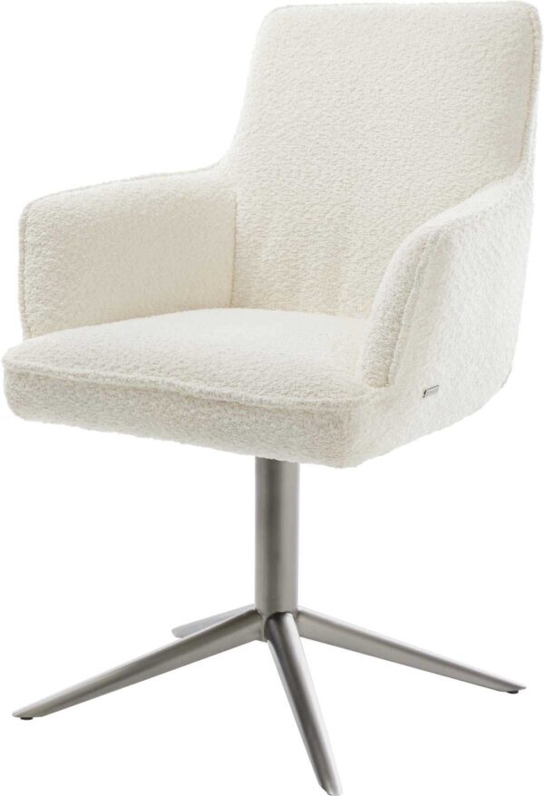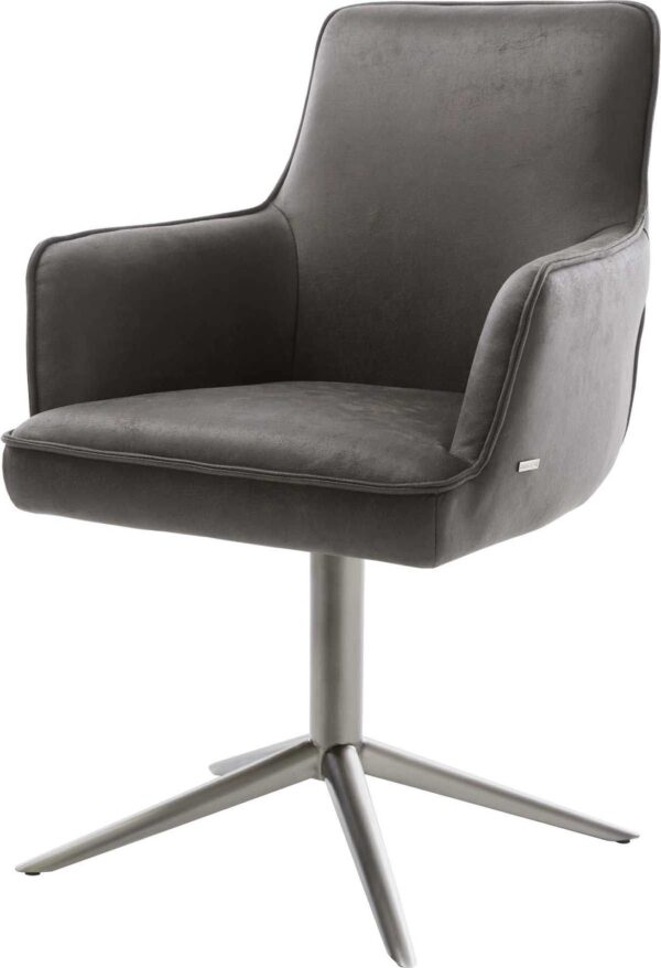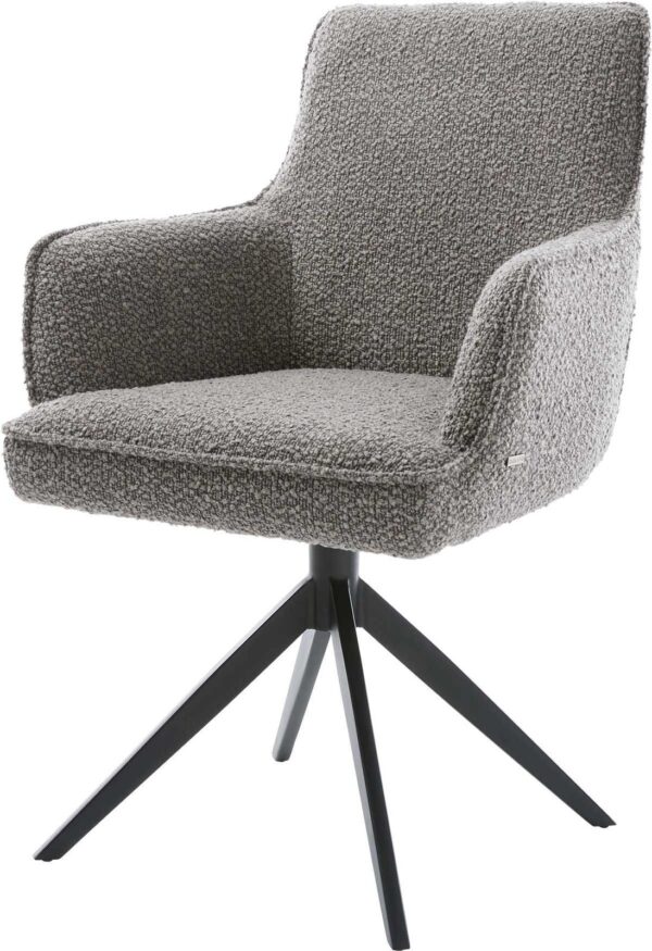 Étkezőszék Heira-Flex karfás bouclé ezüstszürke széles grafit kereszt láb 360° forgatható hintamechanizmus zsákrugós matrac
