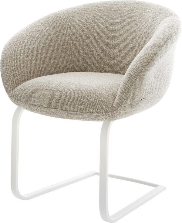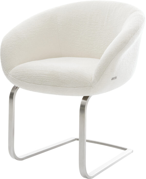 Étkezőszék Vinka-Flex karfás bouclé puha bézs konzolos lapos rozsdamentes acél zsákrugós