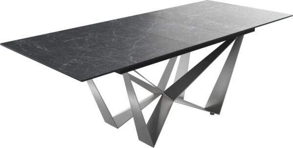 Étkezőasztal Edge 180-220x90 kerámia Laminam®Nero Greco antracit W alakú láb fekete kihúzható