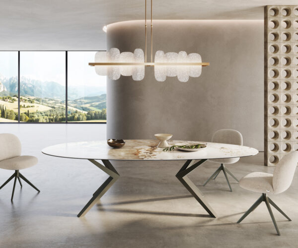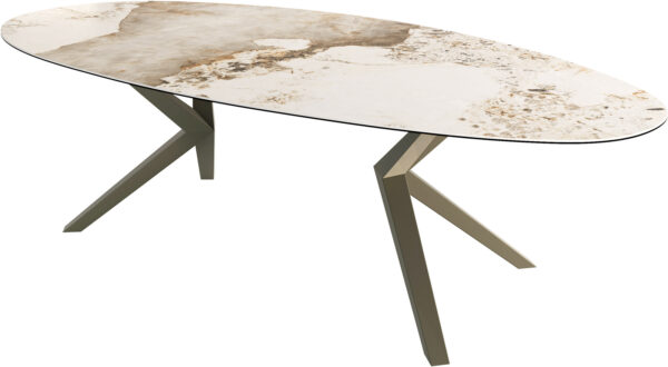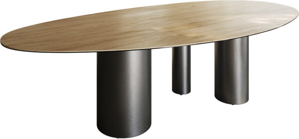Étkezőasztal Edge ovális 315x150 kerámia Laminam®Emperador extra fényes sötétbarna rozsdamentes acél láb grafit