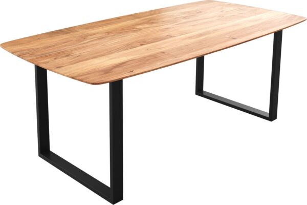 Étkezőasztal Edge hajóformájú 200x100 akác természetes fekete vékony lábazat svájci él