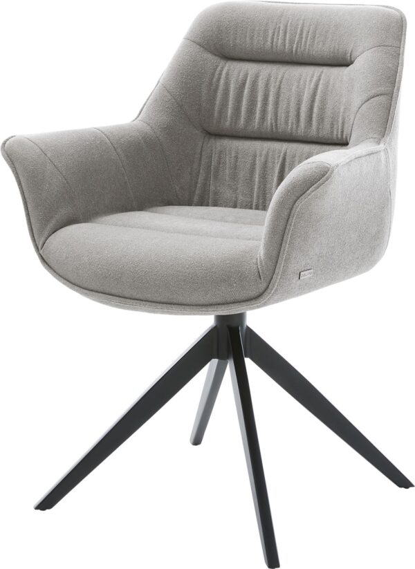 Étkezőszék Kaira-Flex strukturált szövet puha szürke kereszt láb széles fekete 360° forgatható billenő funkció