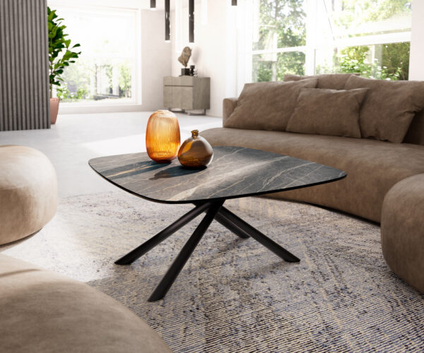 Dohányzóasztal Edge hajóformájú 120x70 cm kerámia Minas Melange Vibany fém titán színű effektfinish