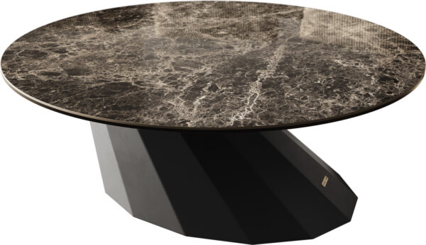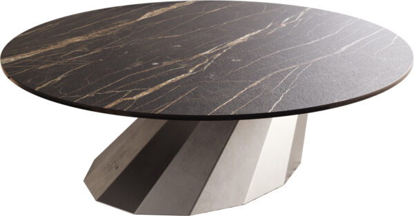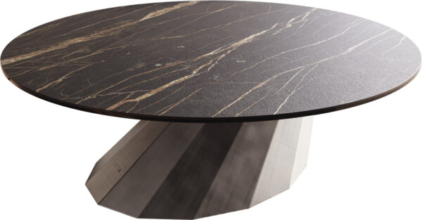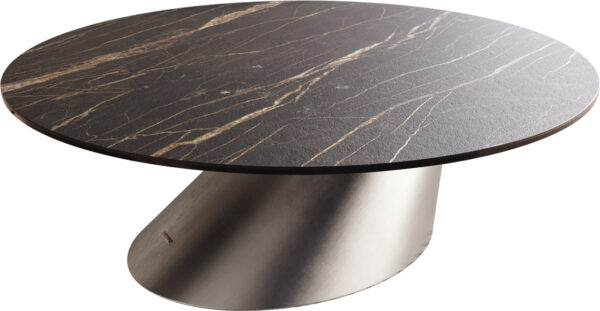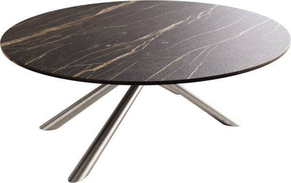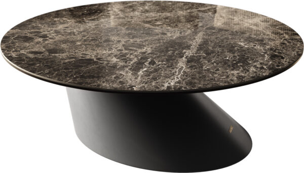 Dohányzóasztal Edge kerek 90x90 cm Laminam® kerámia Noir Desir barna Trive fém fekete