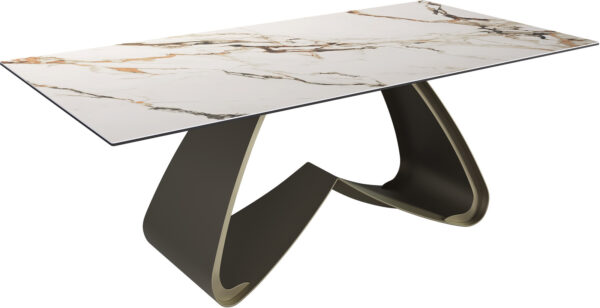 Étkezőasztal Edge 200x100 kerámia Laminam® Emperador Extra Lucidato sötétbarna fém effekt felület titán ferde