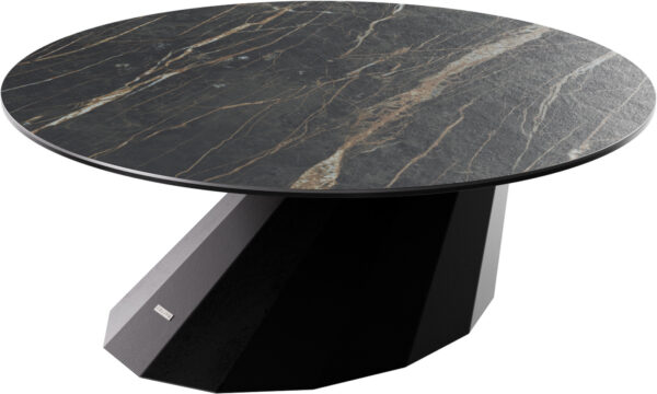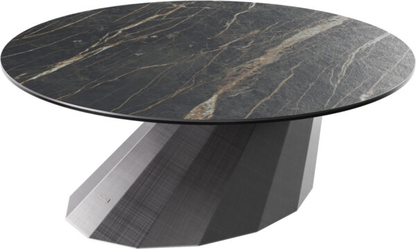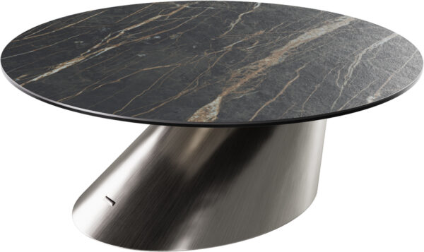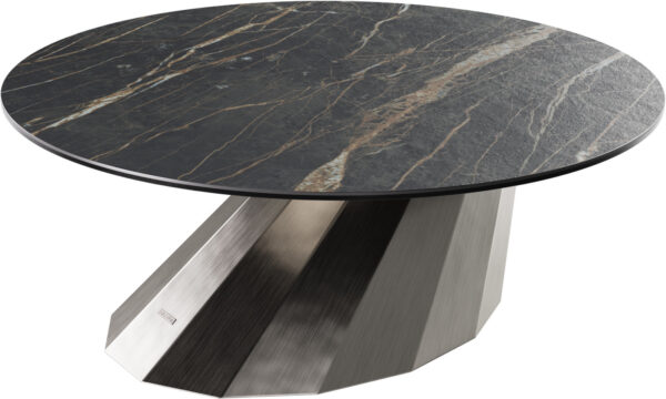 Dohányzóasztal Edge hajóformájú 90x90 cm Laminam® Emperador kerámia extra polírozott sötétbarna Sarity rozsdamentes acél szálcsiszolt
