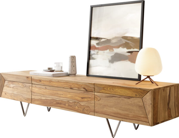 Design TV szekrény Stonegrace 240 cm akác természetes pala 4 ajtós