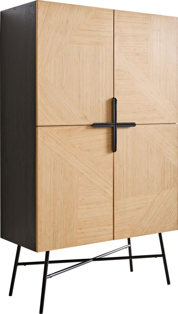 Szekrény Mikkusu 90x150 cm bambusz természetes mango fekete 4 ajtós fém fekete
