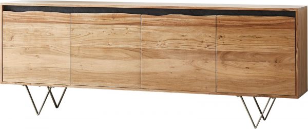 TV szekrény Wyatt 220 cm akác barna 4 fiók V-láb rozsdamentes acél