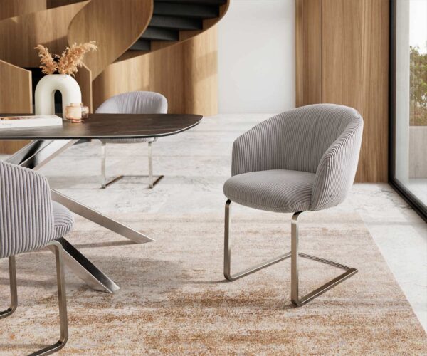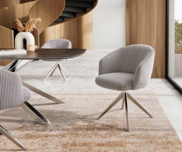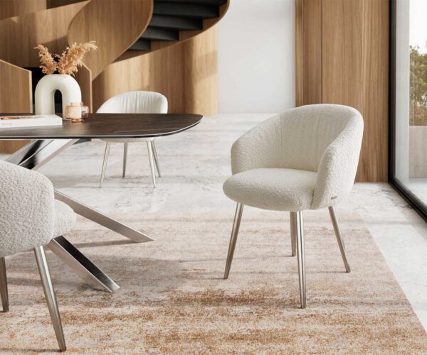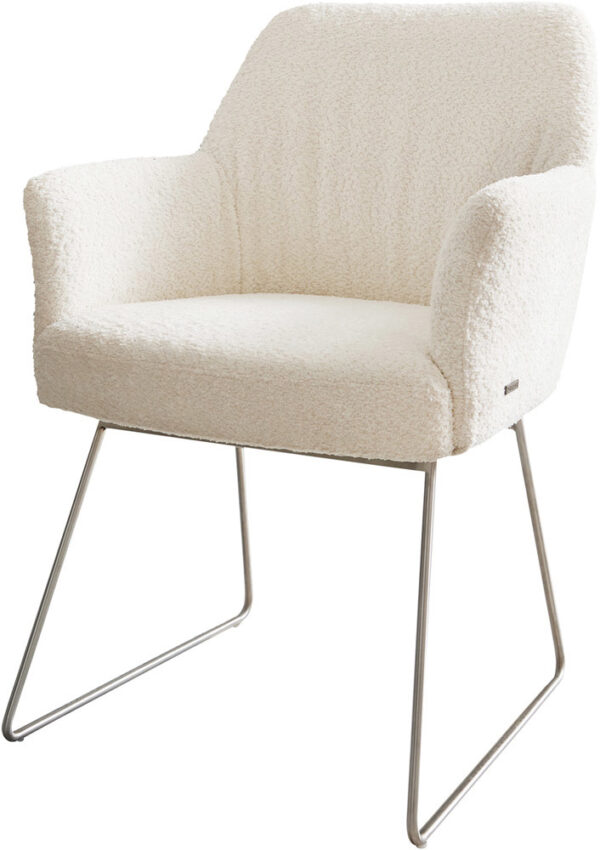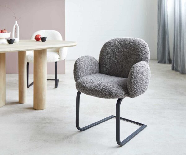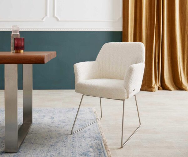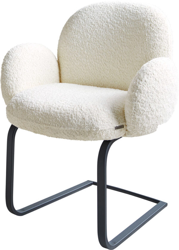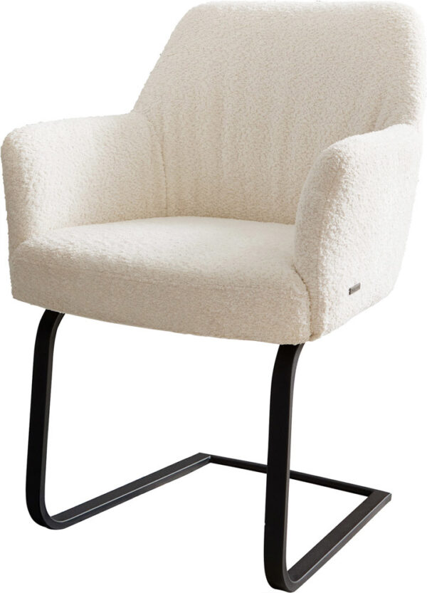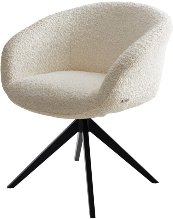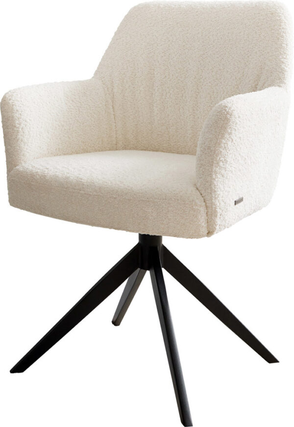 Étkezőszék Nube-Flex karfás bouclé fehér kereszt láb széles fekete 360° forgatható zsákrugós