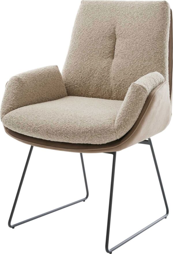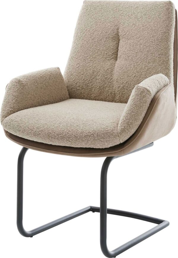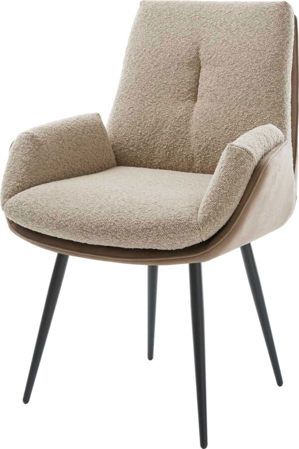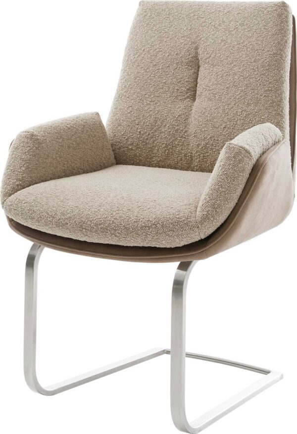 Étkezőszék Vinka-Flex karfás bouclé ezüstszürke vékony fém lábazat zsákrugós
