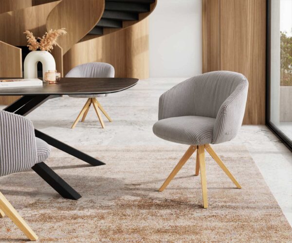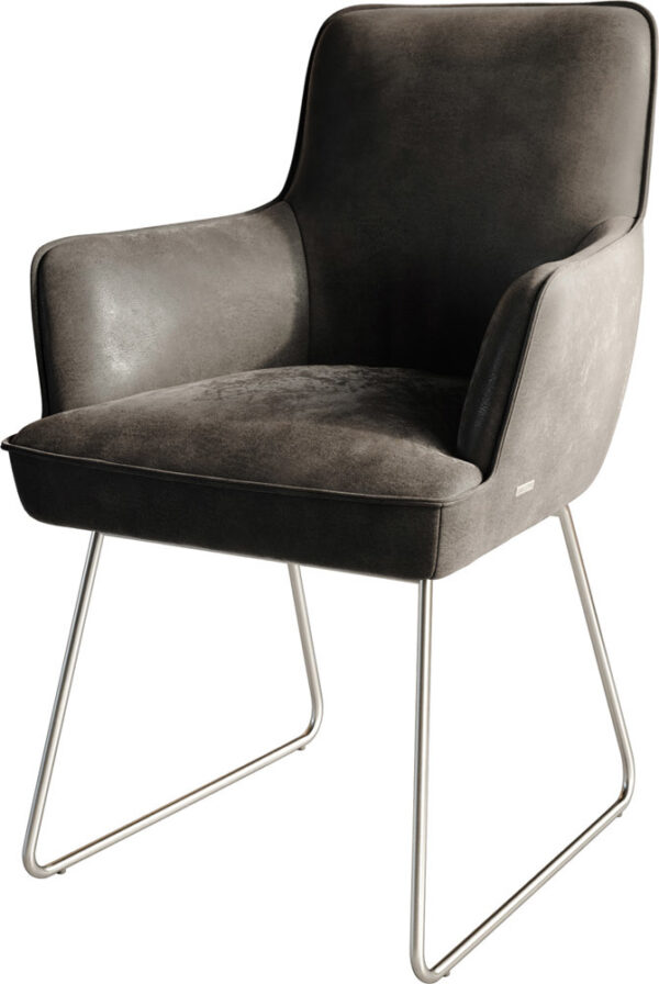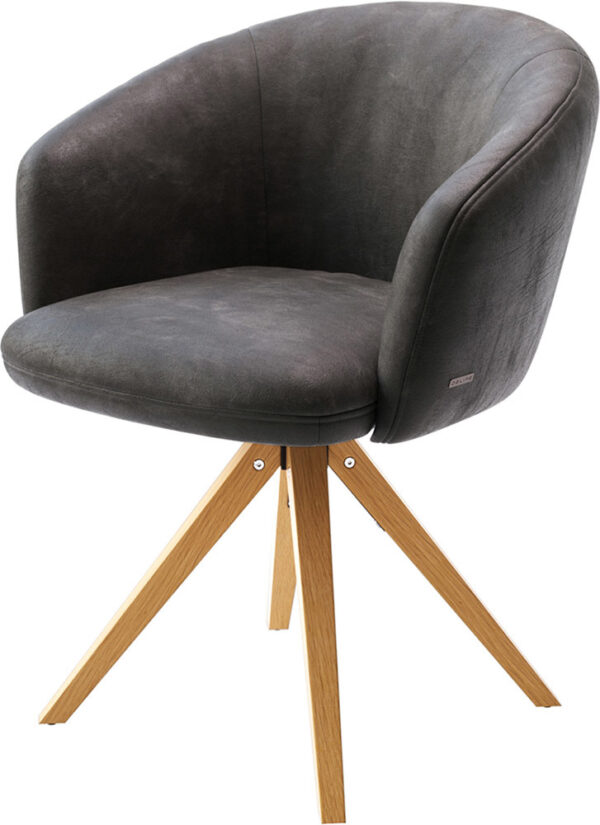 Étkezőszék Vinka-Flex karfás mikroszálas antracit vintage fa láb szögletes természetes 180° forgatható zsákrugós