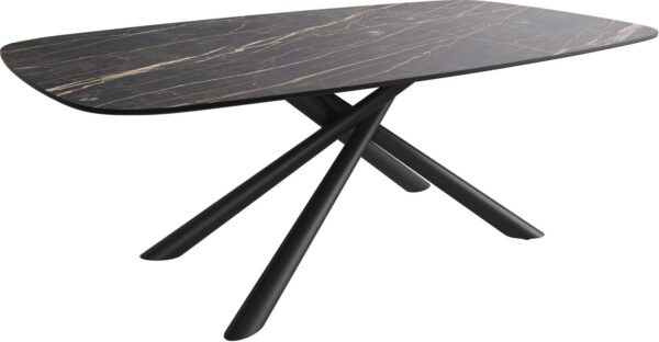 Dohányzóasztal Edge hajóformájú 60x60 cm Laminam® kerámia Noir Desir barna Eleny szálcsiszolt rozsdamentes acél