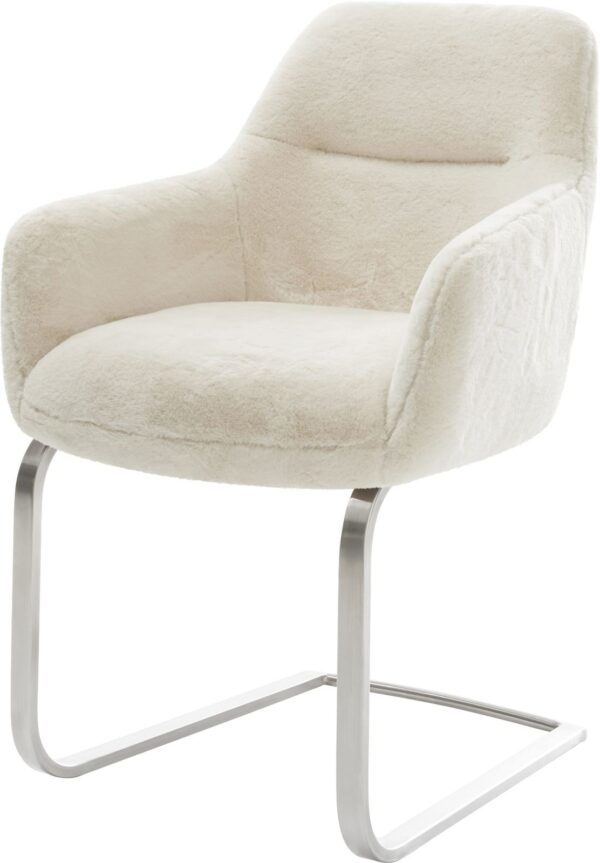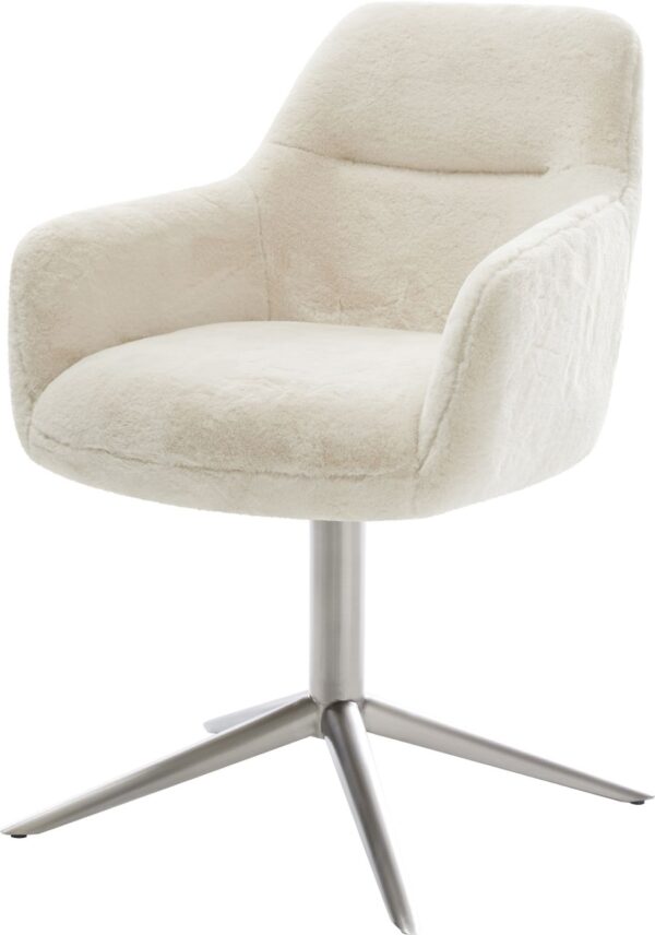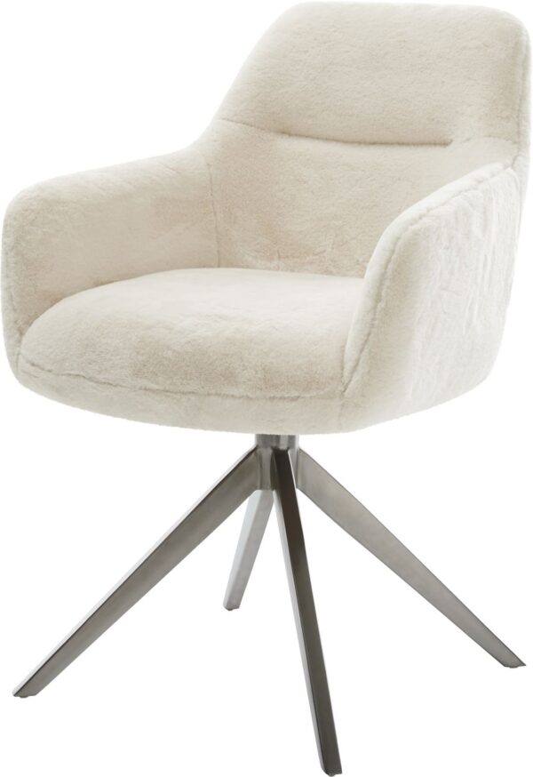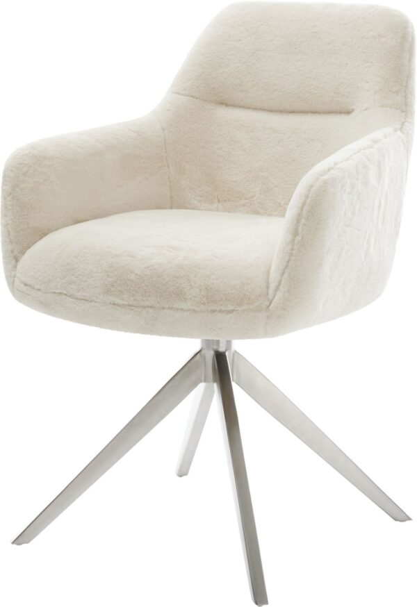 Étkezőszék Pejo-Flex plüss krémfehér kereszt láb széles rozsdamentes acél 360° forgatható billenő zsákrugó