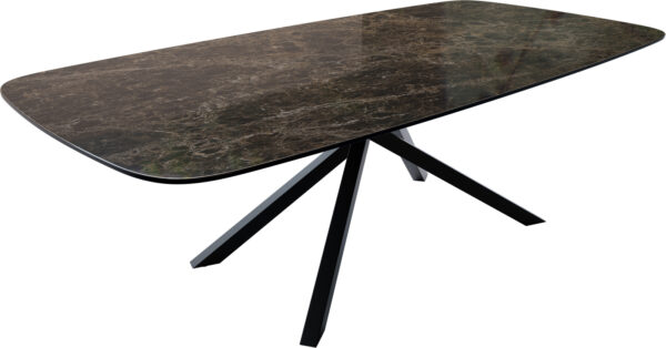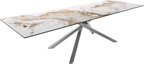 Kültéri étkezőasztal Edge 300x100 cm kerámia Minas melange fehér-bézs kereszt láb téglalap alakú rozsdamentes acél