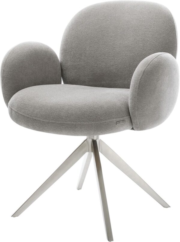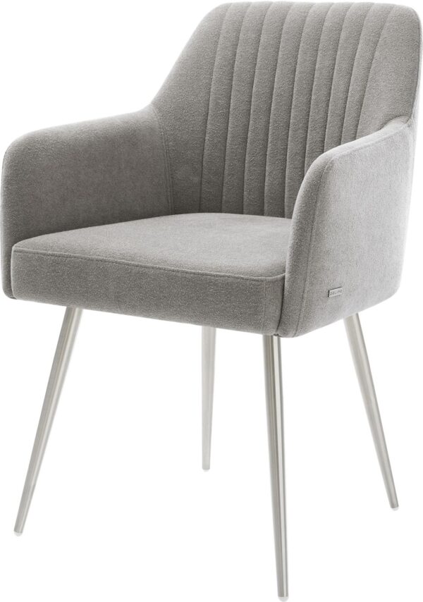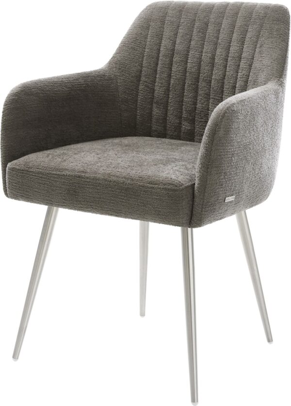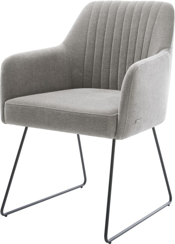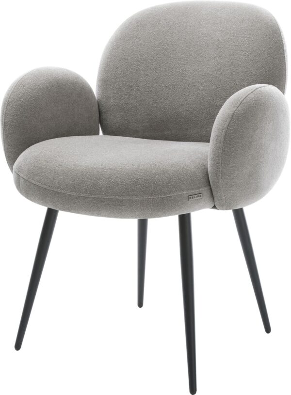 Étkezőszék Nube-Flex karfás strukturált szövet puha szürke 4 lábas kúpos fekete zsákrugós