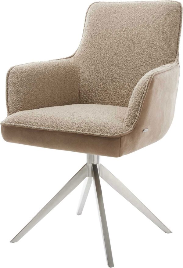 Étkezőszék Heira-Flex karfás vegyes anyagok sötét bézs kereszt láb széles rozsdamentes acél 360° forgatható zsákrugós matraccal