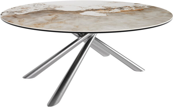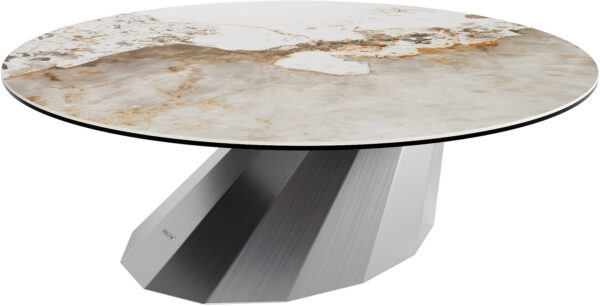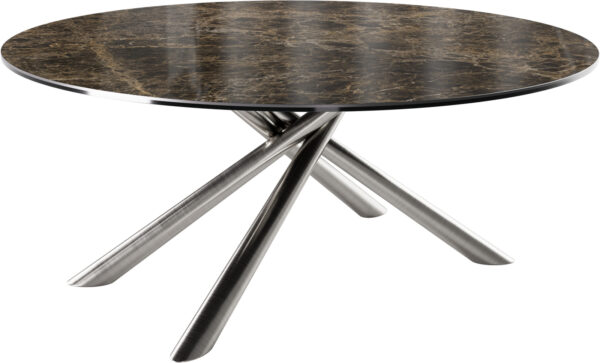 Dohányzóasztal Edge kerek 90x90 cm Laminam® kerámia Noir Desir barna parabi szálcsiszolt rozsdamentes acél