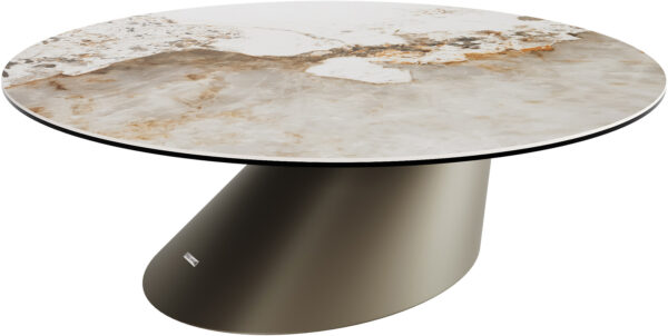 Ez a dohányzóasztal élmény – a kerek Edge valódi Laminam® kerámiából, Noir Desir barna színben