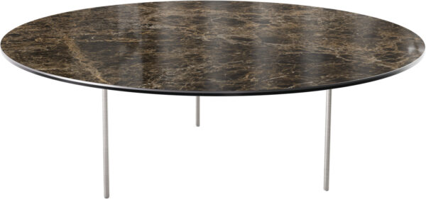 Dohányzóasztal Edge kerek 90×90 cm Laminam® kerámia Noir Desir barna parabi szálcsiszolt rozsdamentes acél