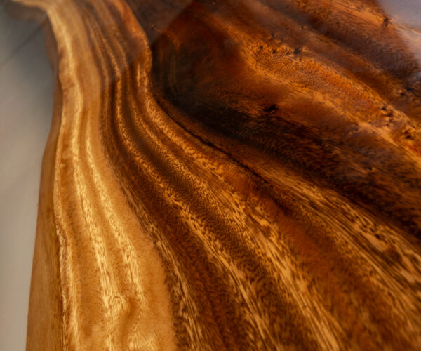 A kézműves magas színvonalú kidolgozás és a rendkívüli tapintás hangsúlyozza az asztallap egyedi karakterét. A Suar fa átszőtt az epoxi különleges hatásával, amely kiemeli a természetességet és lenyűgöző, absztrakt megjelenést kölcsönöz. Ez az asztallap minden helyiséget gazdagít, és exkluzív hangsúlyt ad, amely egyértelműen megkülönbözteti a hagyományos berendezési koncepcióktól.