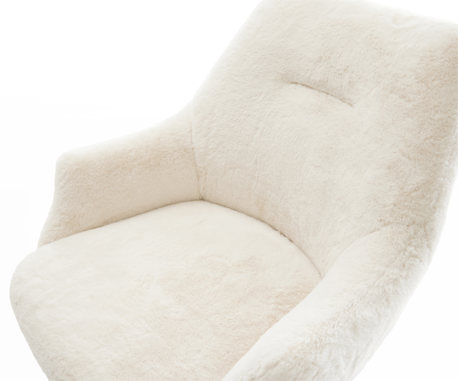 A finom krémfehér plüss huzat különösen elegáns kisugárzást kölcsönöz a székre. A puha tapintás maximális ülési komfortot biztosít – tökéletes választás modern étkező- és nappali terekbe, magas minőségű berendezéshez.