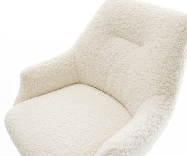 Puha, bézs színű teddy szövettel bevonva különösen otthonos ülésélményt biztosít. A puha anyag meghittséget és stílust visz az étkezőasztalhoz – ideális egy hangulatos otthonba.