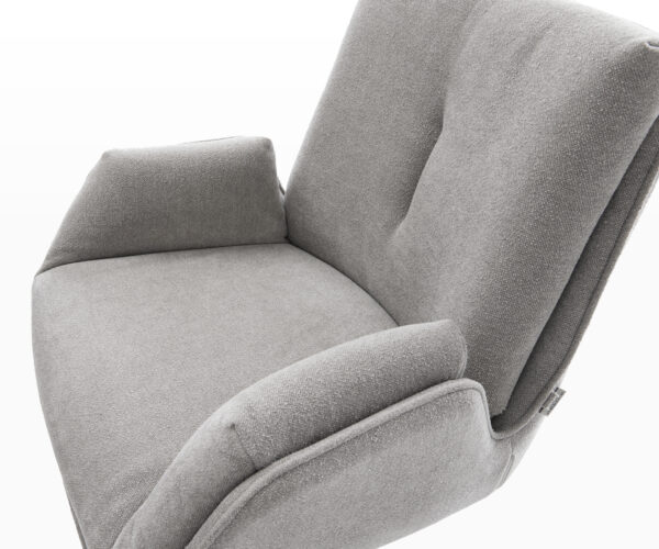 A végig bevont, soft szürke színű strukturált szövet modern, otthonos kisugárzást kölcsönöz az étkezőszéknek. Puha felülete kellemes tapintású, és kiválóan harmonizál különböző szín- és berendezési koncepciókkal – ideális stílusos egyedi székként vagy összeállításban.