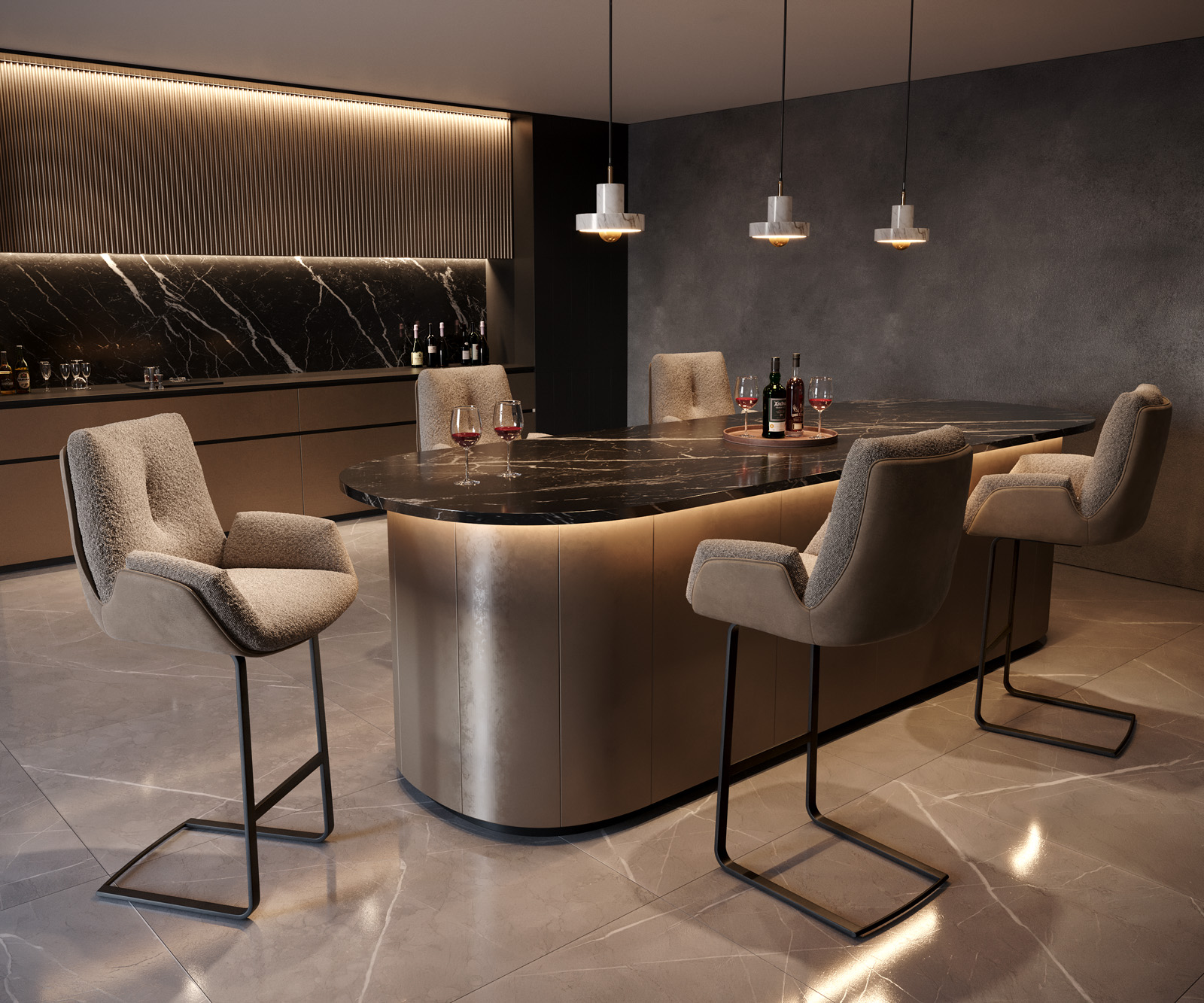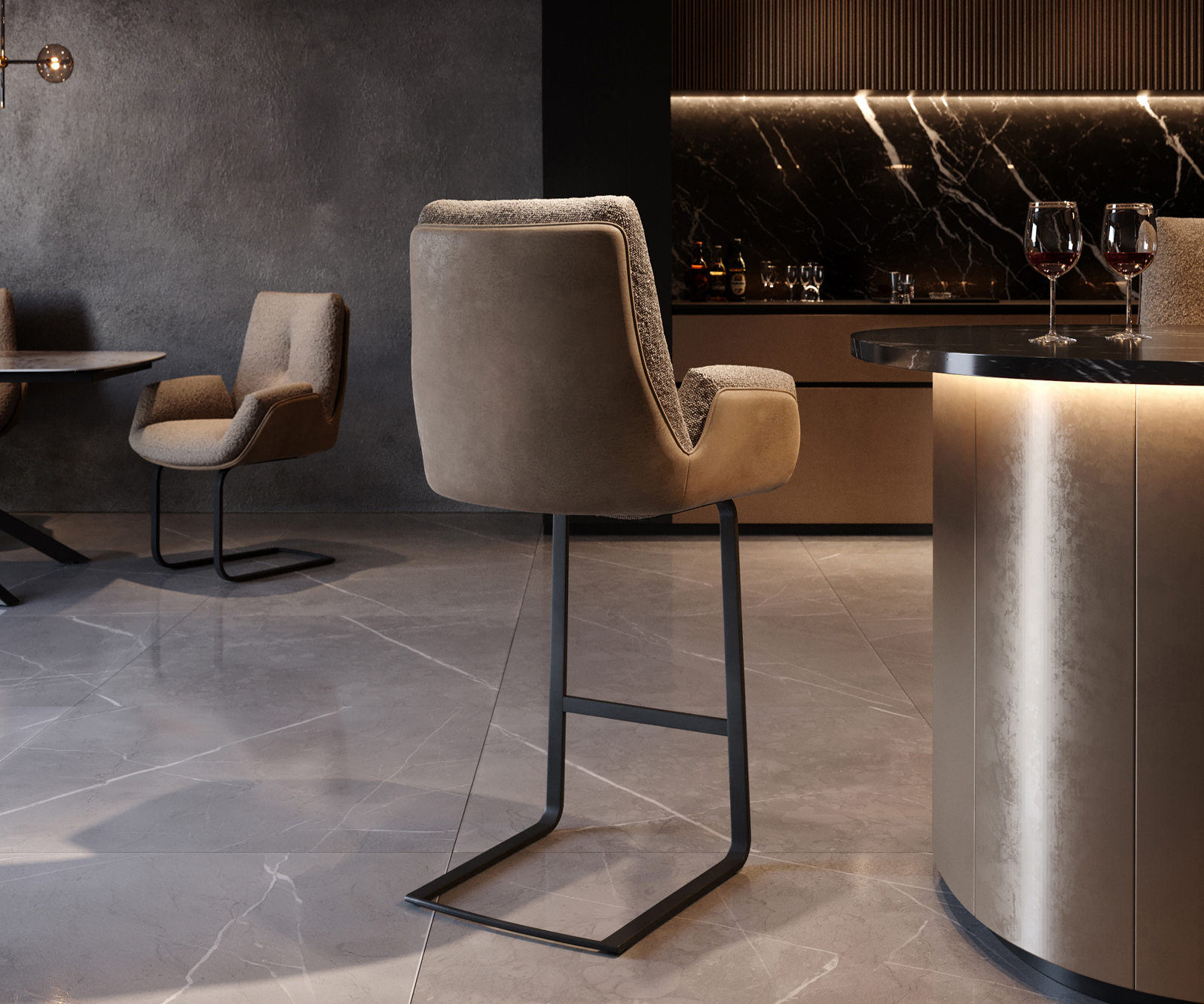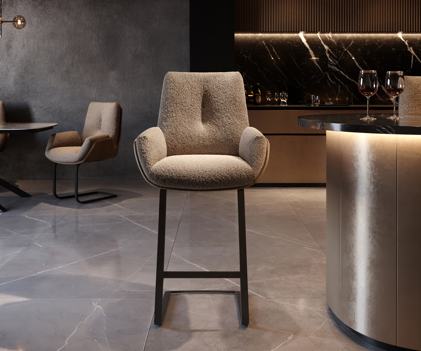 Bárszék Clea anyagkombináció mikroszálas / bouclé sötét bézs – bárszékrendszer a DELIFE-től