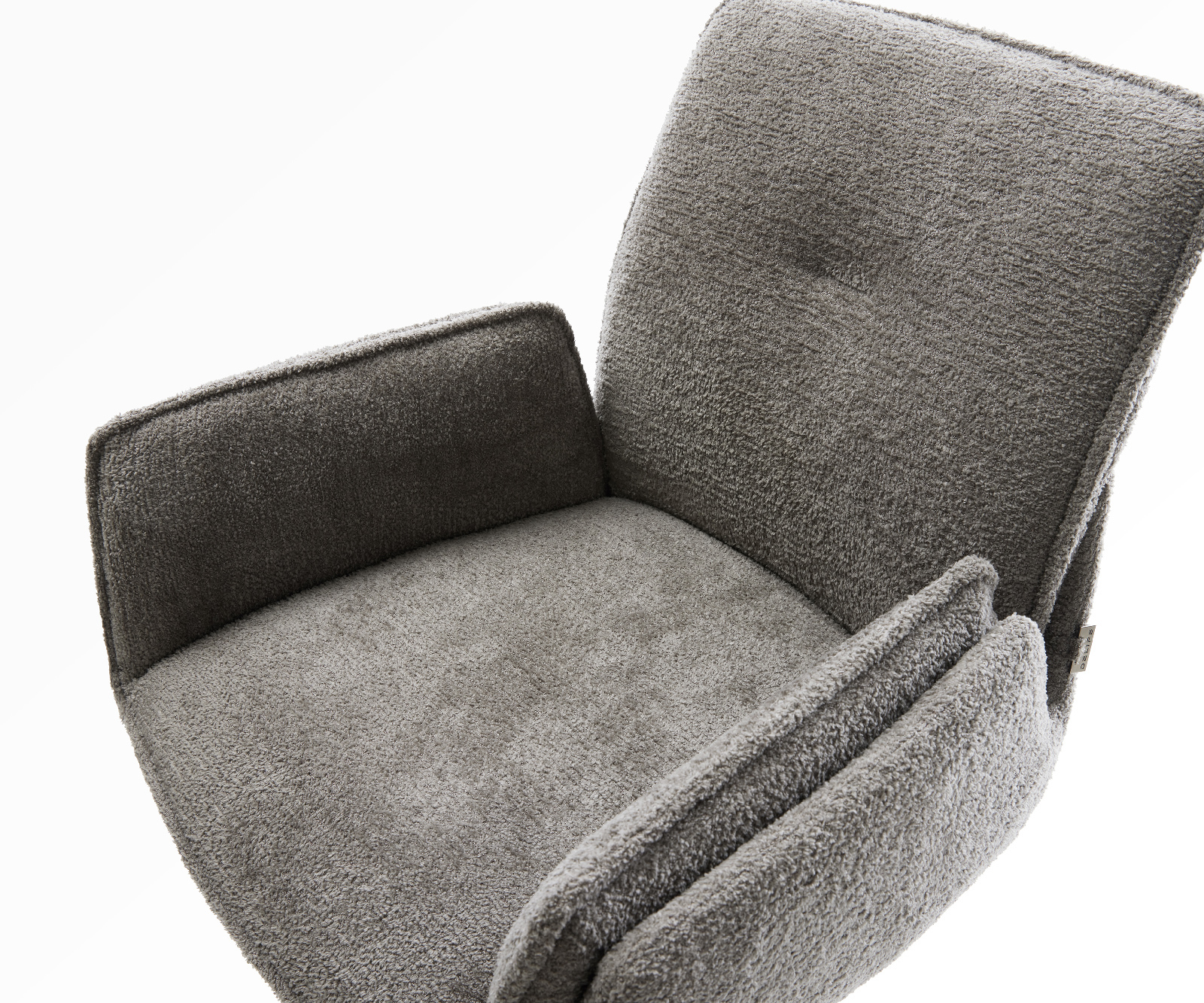 Ez a szék magas minőségű bouclé huzattal rendelkezik meleg sötét bézs (schlamm) árnyalatban. A diszkrét struktúra és a nyugodt szín modern, otthonos kisugárzást kölcsönöz a bútor darabnak – tökéletes az étkezőbe vagy az olvasósarokba.