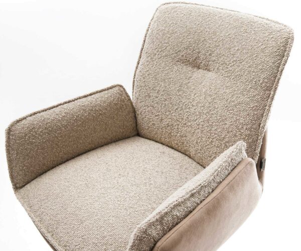 Egy izgalmas anyagkombináció elegáns sötét bézs (schlamm) árnyalatban, puha mikroszálas külső borítással és kiváló minőségű bouclé anyaggal az ülőfelületen teszi az étkezőszéket valódi must-have darabbá minden ízlésesen berendezett étkezőben. A két anyag használata vizuálisan különösen vonzó, akár egyedi darabként, akár ülőgarnitúraként.