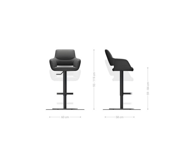 A széles lábazat különösen stabil és borulásbiztos. A gázteleszkóp segítségével a bárszék magassága könnyedén az Ön igényeihez igazítható. A bárszék 360 fokban forgatható, továbbá praktikus lábtartóval rendelkezik, amely különösen kényelmessé és komfortossá teszi az ülést.