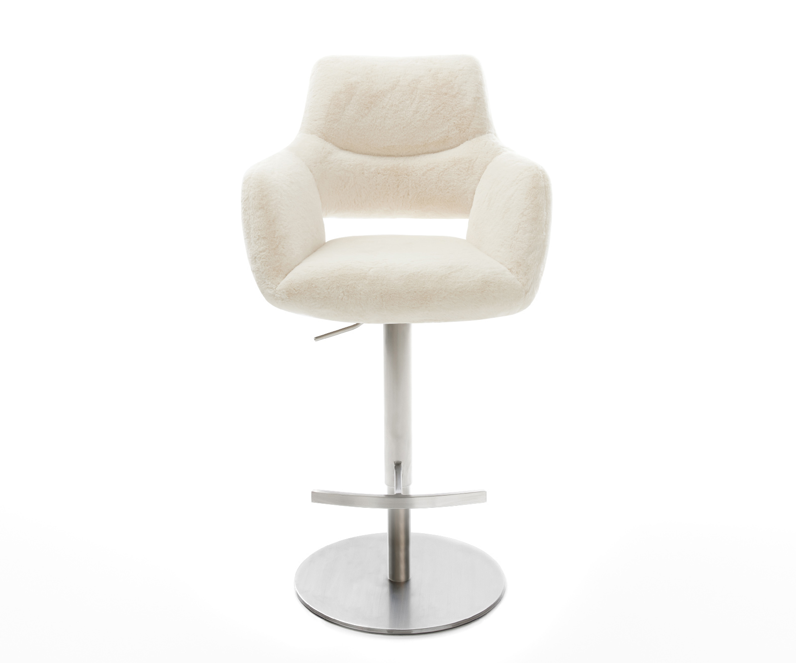 Bárszék Yago-Flex plüss krémfehér forgatható magasságban állítható rozsdamentes acél ezüstszínű zsákrugós
