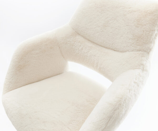 A nemes plüss huzat lágy krémfehér színben különösen elegáns kisugárzást kölcsönöz a székre. A puha tapintás a legmagasabb ülési kényelmet nyújtja – tökéletes modern étkező- és nappali terekhez, magas minőségű berendezéssel.