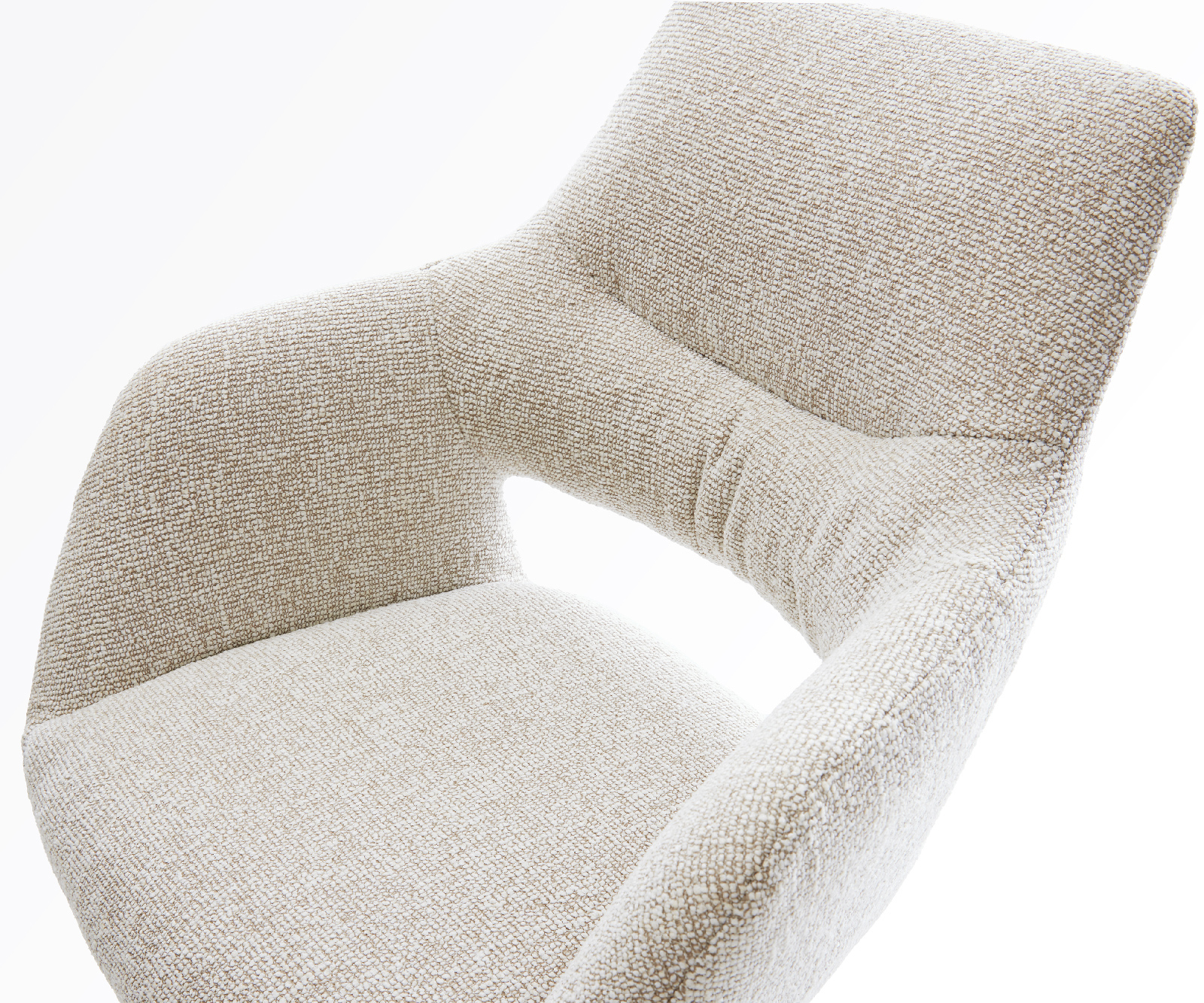Az étkezőszék Yago-Flex egyedi ülőhéj dizájnjával és áttört háttámlájával lenyűgöz. Finoman ívelt karfái és elegáns díszvarrása harmonikusan egészítik ki a megjelenést, így a Yago-Flex valódi látványosság az Ön étkezőjében. A kiváló minőségű habból készült párnázat beépített zsákrugóval teszi az ülést igazi élvezetté.