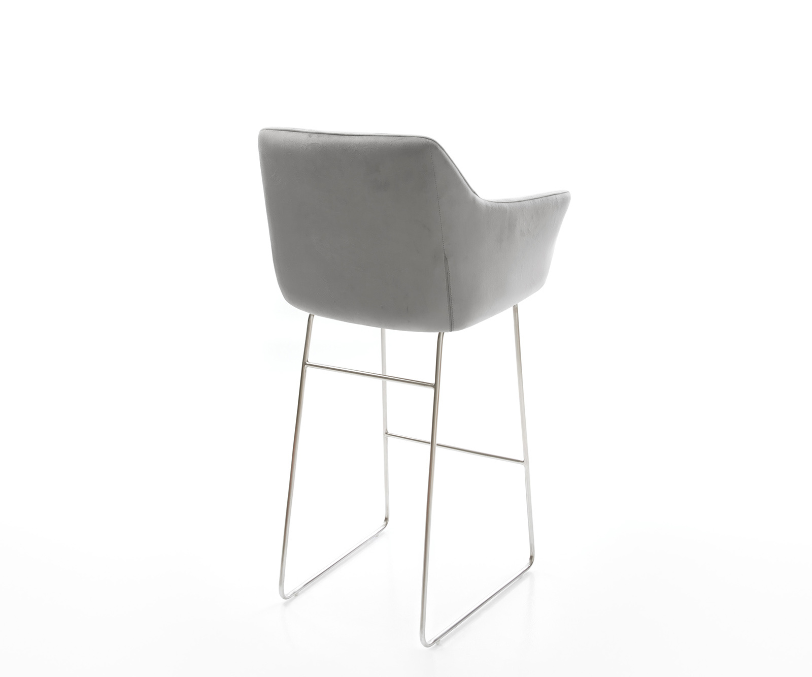Akinek izgalmasan más bárszék dizájnra van szüksége, a Yulo lenyűgözni fogja. A feltűnően formázott ülőke, a végig kifelé ívelt karfákkal, valamint a teljes ülőfelületen végigfutó kidolgozott varrások a Yulo-t egy olyan design különlegességgé teszik, amely nap mint nap újra és újra elvarázsol. A puha, szürke bársony nemes csillogása különlegessé teszi ezt a széket. A modern bársonyszövetek strapabírók és ellenállóak, ezért kiválóan alkalmasak a legújabb székdizájnokhoz.