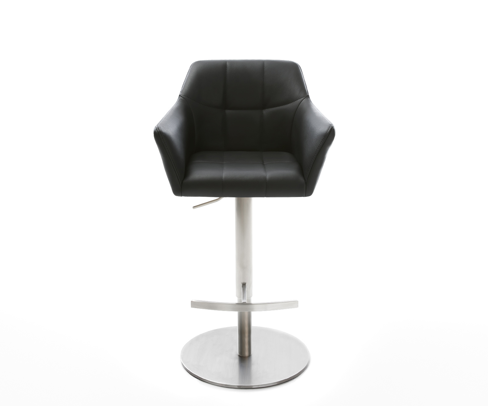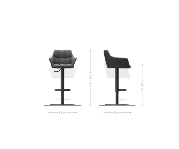A lábkeret a széles talpnak köszönhetően különösen stabil és borulásbiztos. Gázteleszkóp segítségével a bárszék magassága könnyedén az Ön igényeihez igazítható. A bárszék 360 fokban forgatható, továbbá praktikus lábtartóval rendelkezik, amely különösen kényelmessé és komfortossá teszi az ülést.