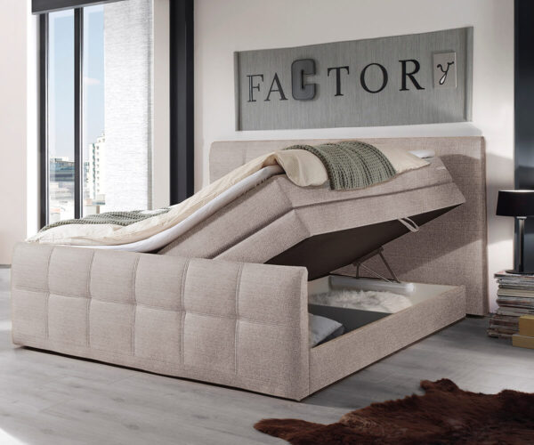 Letisztult, visszafogott bézs színének köszönhetően a design ágy könnyedén illeszthető a már meglévő hálószobabútorokhoz. A luxuságyat trendi, magasfényű enteriőrökkel ugyanúgy harmonikusan kombinálhatja, mint természetes, masszív fa bútorokkal. Az ágyneműtartó, a box és a bonell rugós matrac együttesen magas fekvőfelületet eredményez. Ezért ebben a boxspring ágyban gyorsan megtalálja az ideális fekvőpozíciót, és kipihenten, erőfeszítés nélkül kelhet fel. Most már ismeri azt a kritériumot, amely az amerikai ágyakat és bizonyos szállodai ágyakat világhírűvé tette, és otthonában is megtapasztalhatja ezt az egyedülálló kényelmet a bemutatott design ággyal.