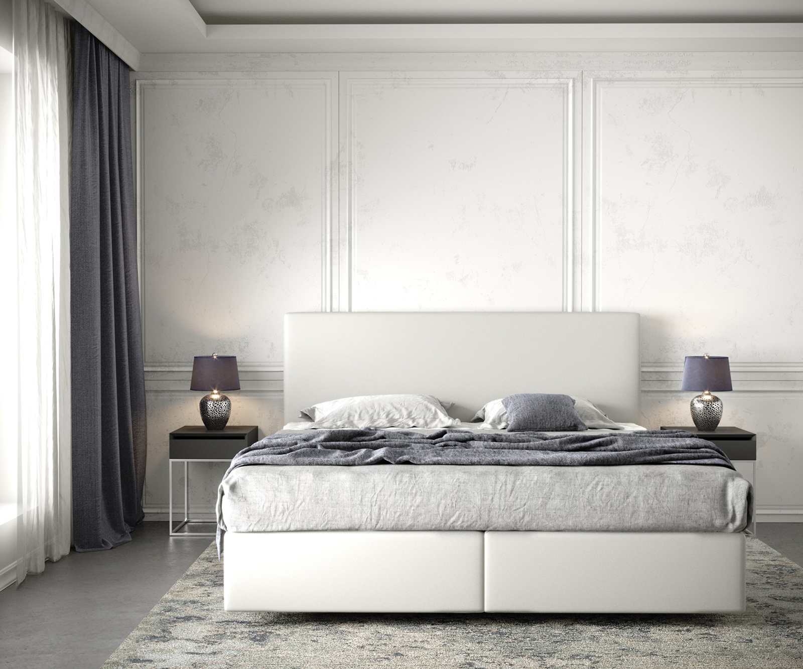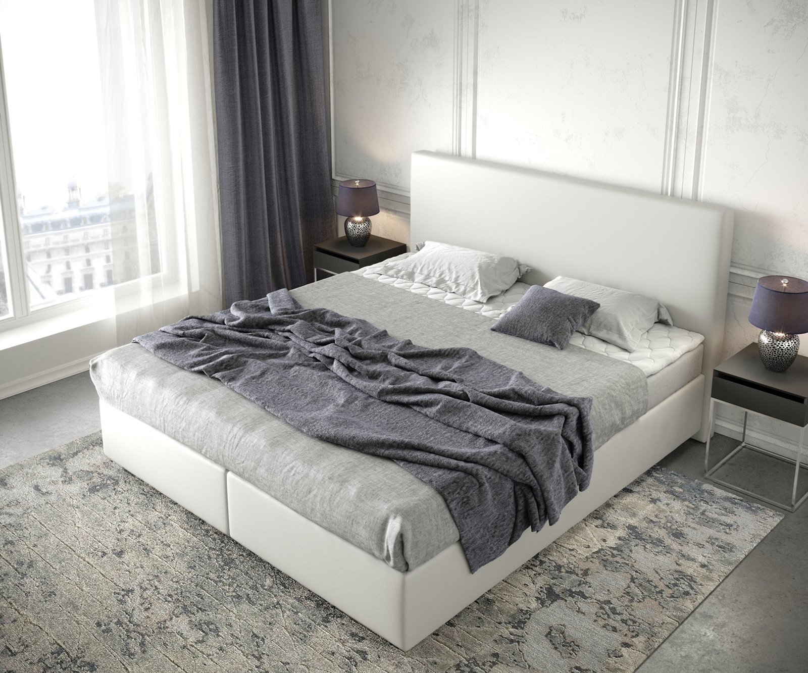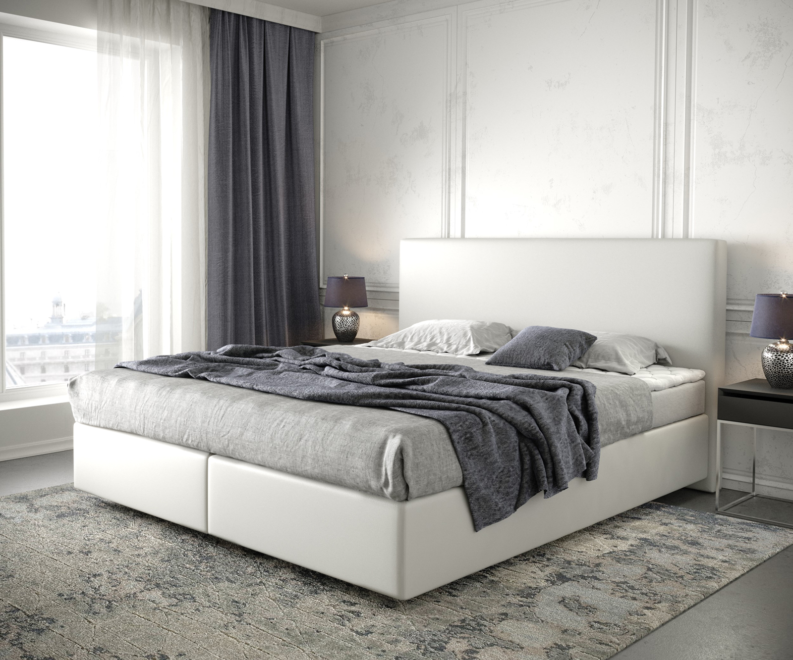 Skříňová pružinová postel se dodává se sadou nožiček v elegantním hliníkovém vzhledu. Ty mohou být namontovány viditelně vpředu nebo posunuty dozadu, aby postel působila plovoucím dojmem. Postele box spring jsou k dispozici také bez matrace a lze je vybavit jinými matracemi. Díky měkce čalouněnému opěradlu můžete ve své nové oáze pohody trávit příjemné hodiny i při čtení večerů nebo o víkendu. Robustní imitace kůže v elegantní bílé barvě dodává každému kusu nábytku luxusní nádech a lichotí pokožce hladkým povrchem.
